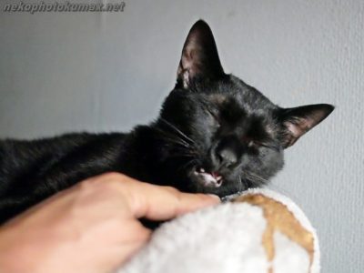 寝ているキーちゃんをちょっと撫でてみます。