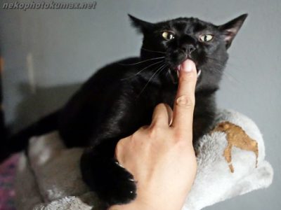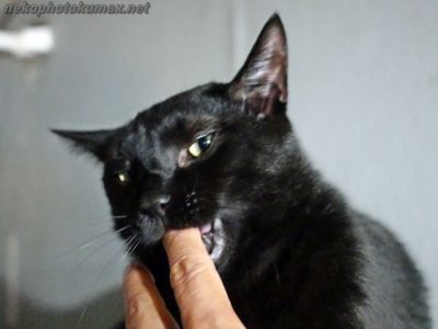自分の指をガシガシするキーちゃん。