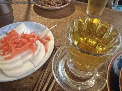 ダイコンショウガ乗っけてお酢だけで貰ってまったりムード。