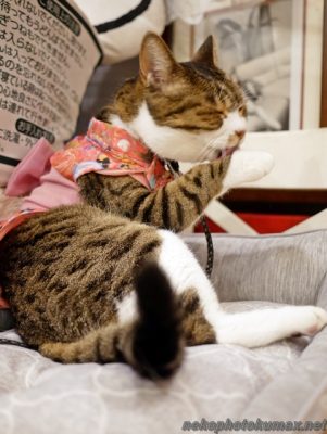 ママさんの手にじゃれる形になっちゃったバサラさん。