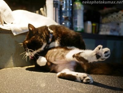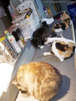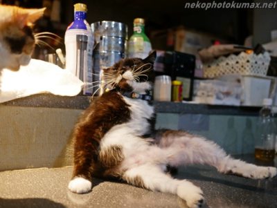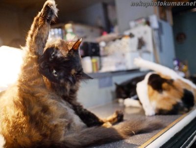 猫さん達は思い思いに毛づくろい開始。
