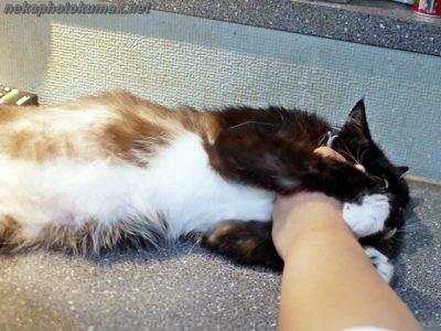 ママの手にアゴを乗せてのんびりお休みになってしまいました。