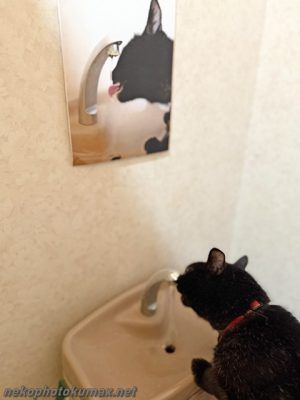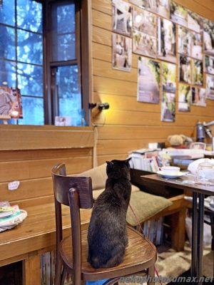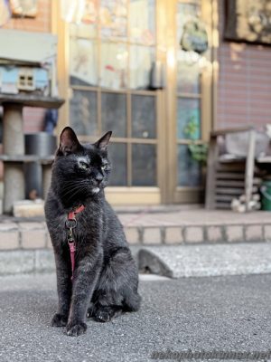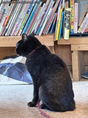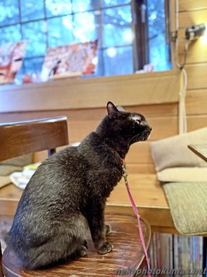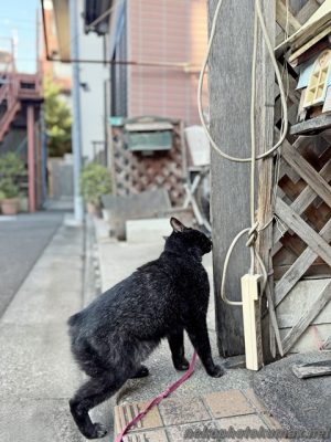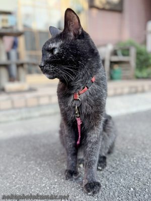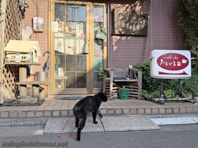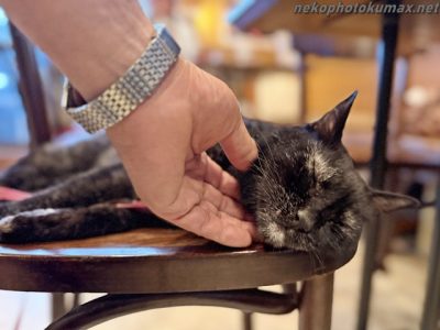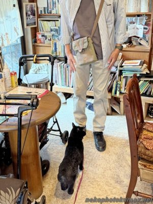 ネロくん、ご挨拶の後にお城と猫が大好き(?)なお客さんの横を通って…