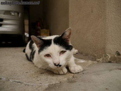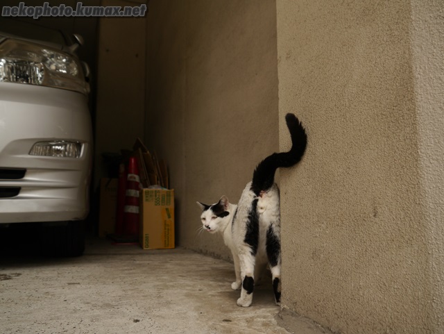 シャッタ音にビクッとした白黒さん。