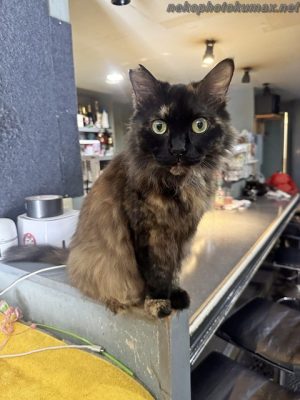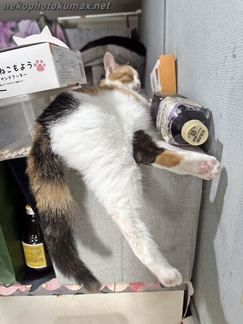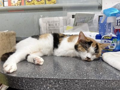 カウンター後ろのミニテーブルではアズキちゃんがお休み中です。