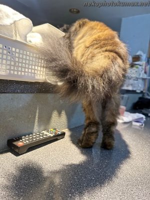 ソーセージを狙うアンコさん。