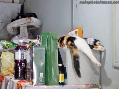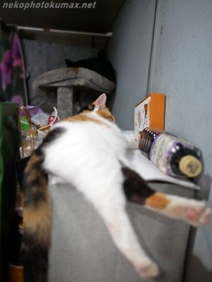 壁際ではムギちゃんが足を投げ出してお休み中。