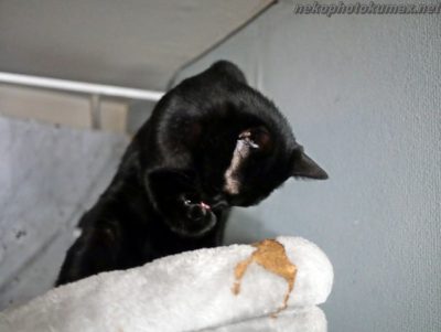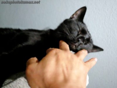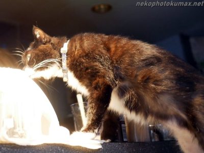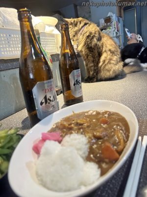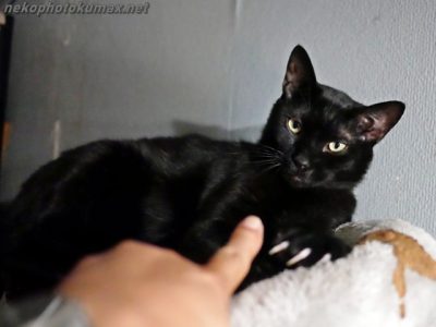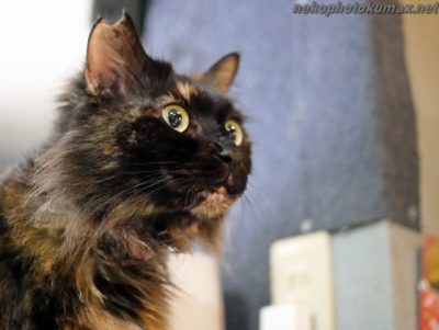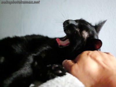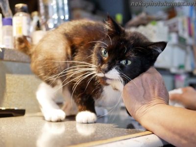 洗い物が終わってカウンターに座ったママさんに甘えるマメちゃん。