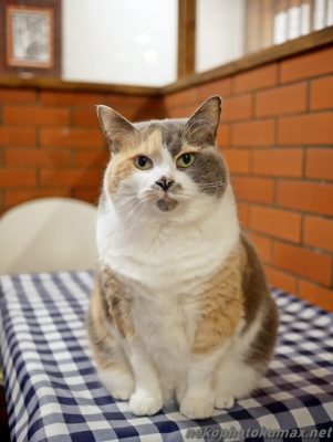 タビちゃん、肉球ロードから降りてきてこちらを見つめていますねぇ。