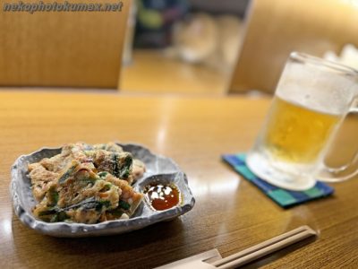 ママさんが出してくださったチヂミを肴にビールを呑んで…