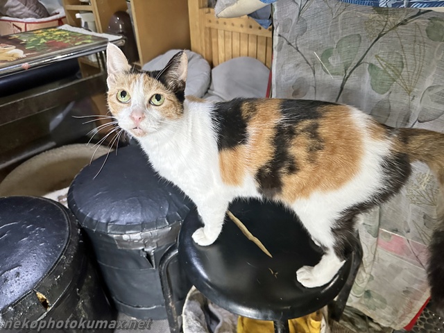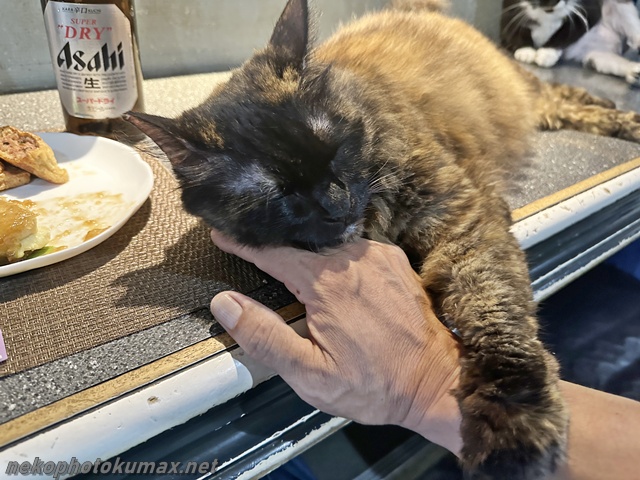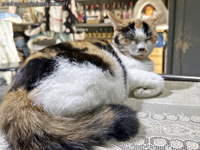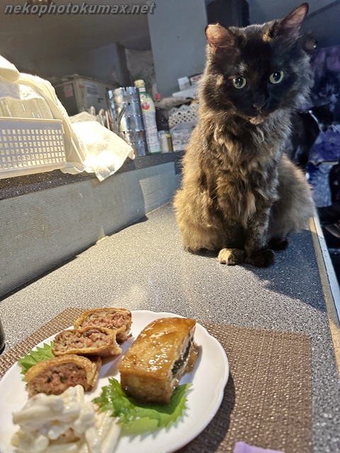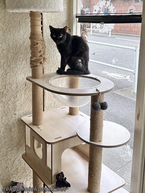 入口横のキャットタワーに座るジジちゃんにご挨拶してお店に入ります。