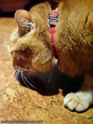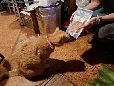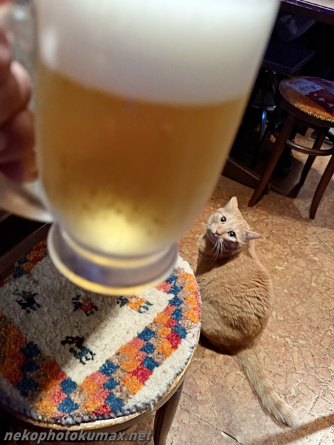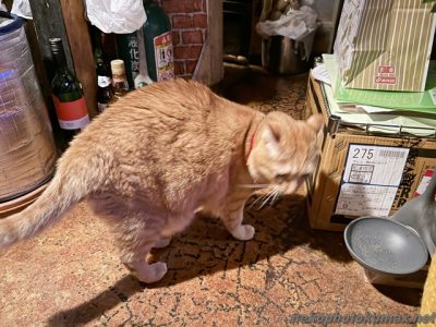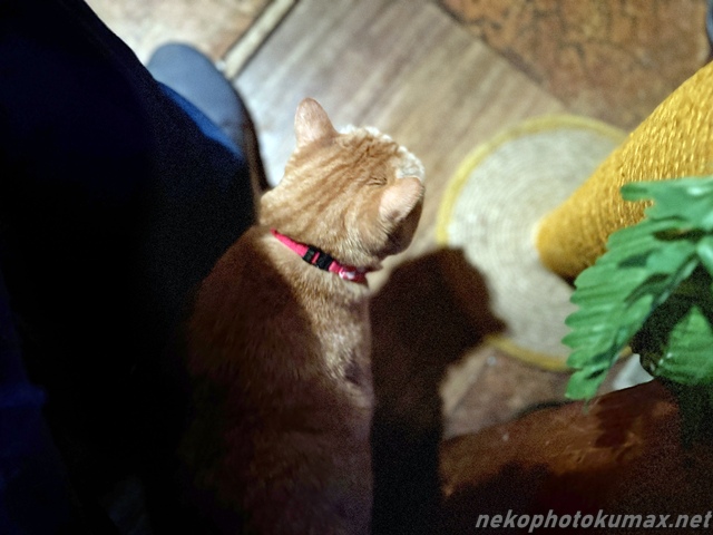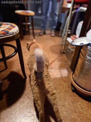 看板猫ちゃいろさんが足元に来てご挨拶。