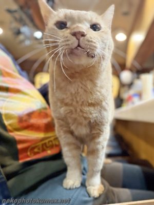 膝に乗ってご挨拶に来てくださったポンちゃんを撫で撫で♪