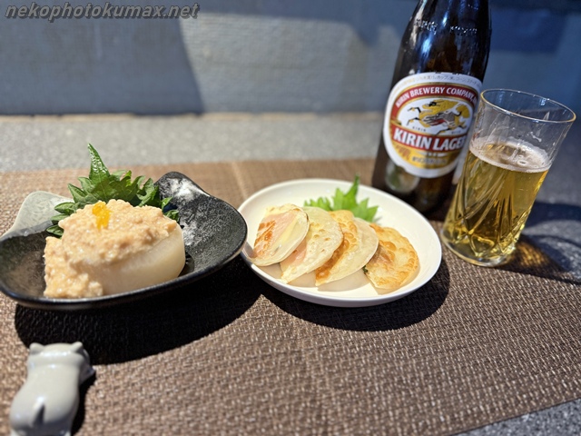 お料理は、ダイコンに鶏ひき肉餡を乗せたもの。