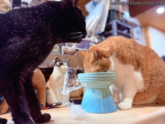 あおいさんとなつめさんが猫店員専用デスクからご挨拶。