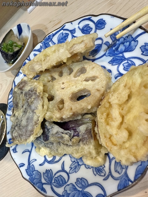 サクサクに揚がったナスとレンコン、そしてサツマイモ。