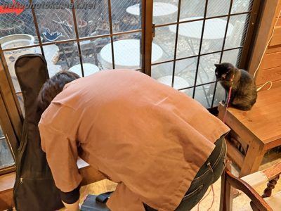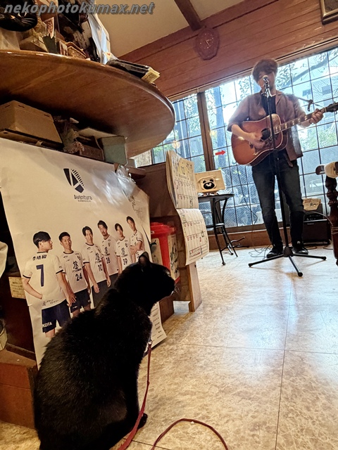 客席で歌を聴いていた看板猫ネロくん。