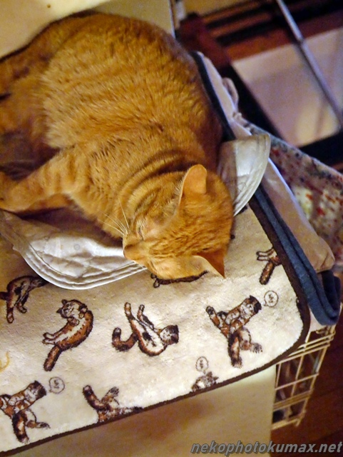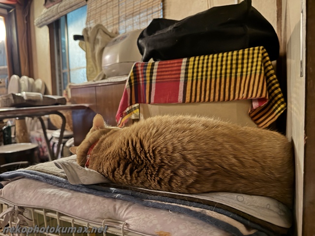 スタンプのモデル、看板猫ちゃいろさんは2階に上がって行ってしまいました。
