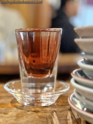 焼酎梅割り、アブラガツ一本ずつお酢、タンナマ赤いとこお酢をいただきます。