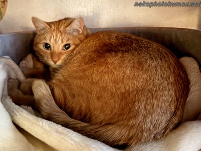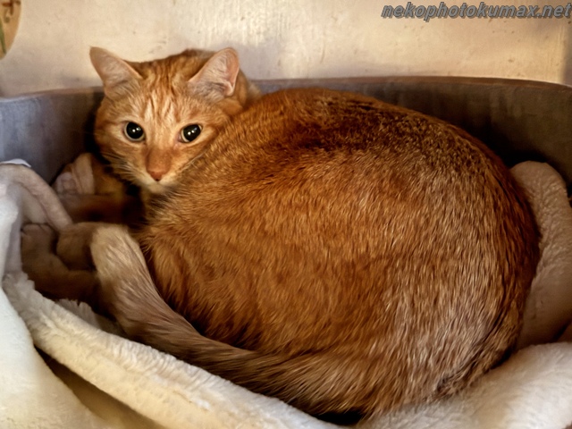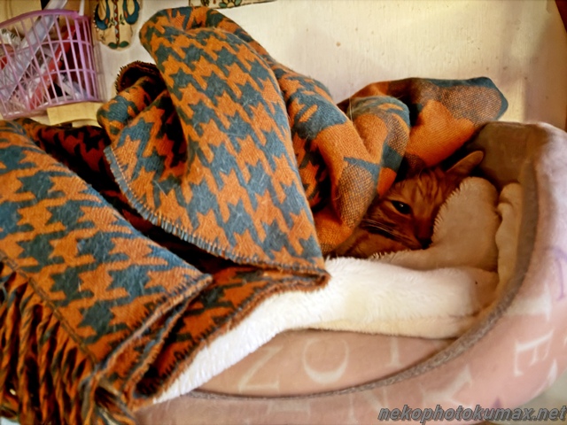 看板猫ちゃいろさんは毛布に包まってお休み中。
