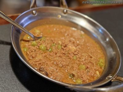 ミルチさんでは珍しいメニュー、牛肉と鶏のキーマカレーをいただきます。
