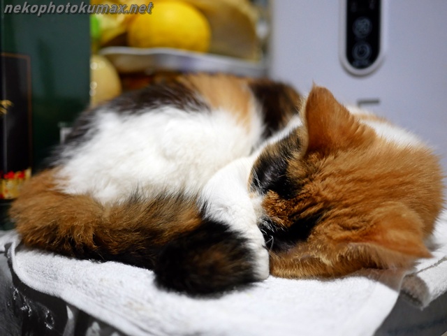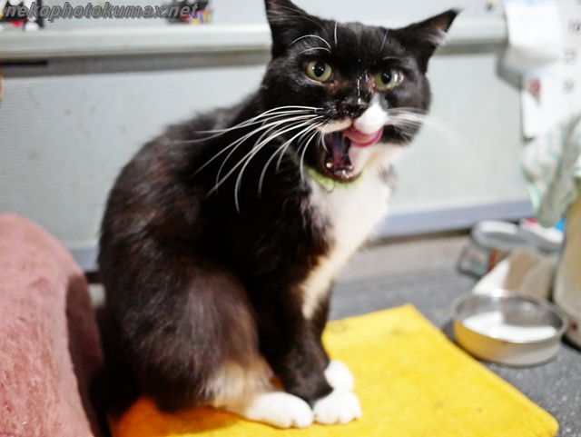 袋をめくって見て見ると、アズキちゃんちょっと迷惑そうなお顔です。