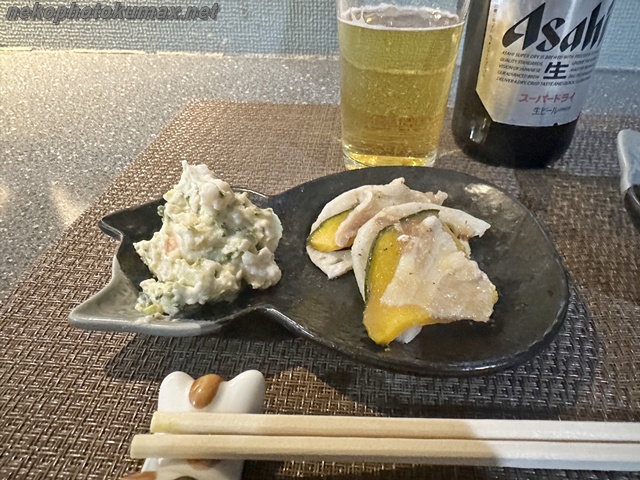 アンコさんを横にお料理を頂きながらビールを呑んで…