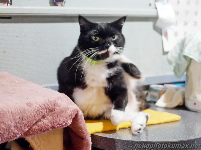 定位置で毛づくろいするムギちゃんにご挨拶して…