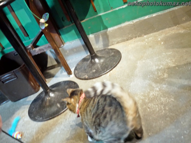ネコジャラシを追いかけて店内を走り回るマメくん。