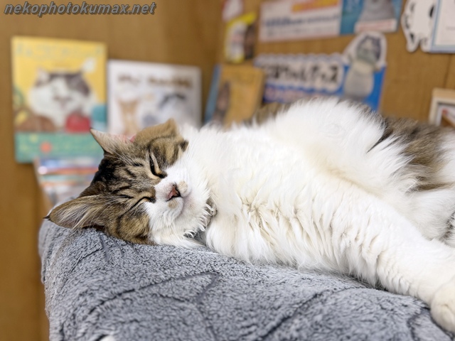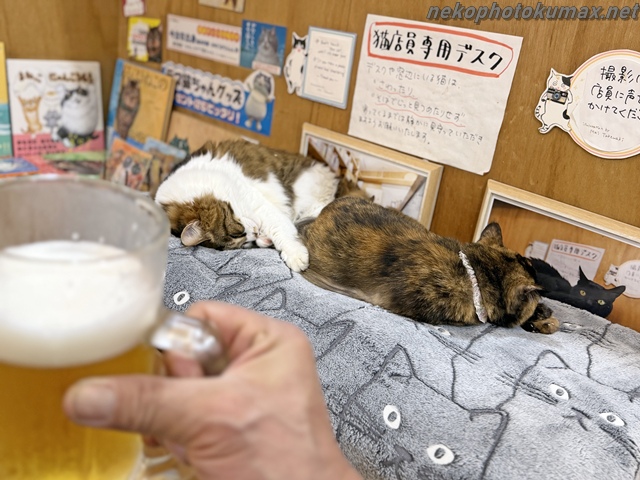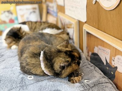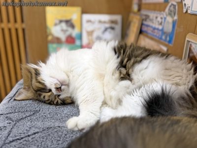 さて、猫店員さん達は専用デスクでお休み中です。