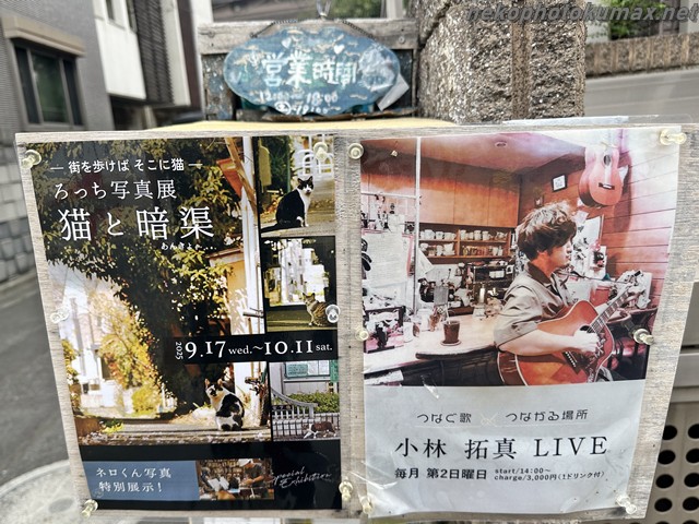 窓際にはアクタさんで定期ライブを行っている小林拓真さんとネロくんの写真。