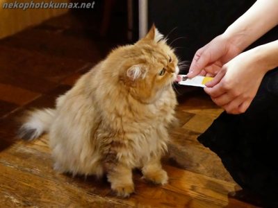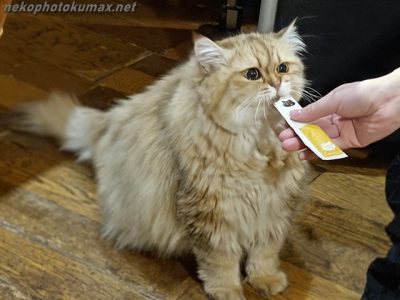 今度は液状おやつを貰っていました。