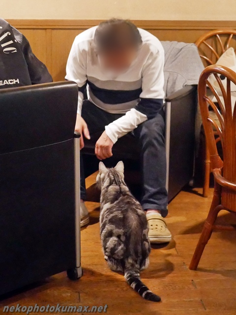 常連さんにご挨拶して撫でて貰うグーちゃん。