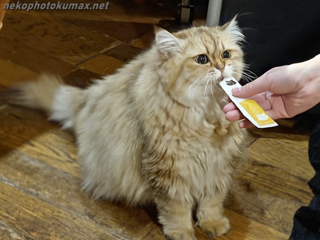 今度は液状おやつを貰っていました。