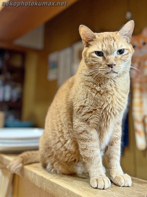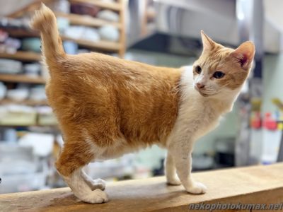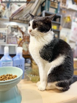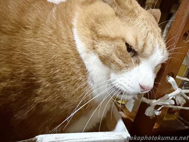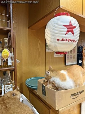 カウンター席の箱で寝ていたキクちゃんが目を覚ましました。