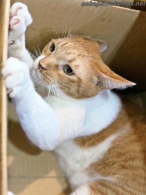 バリバリ爪とぎするキクちゃん。