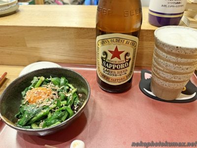 そして選べる付け出しの中から、ニラのおひたしをいただきます。