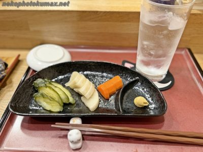 最初のニラのおひたしと煮込みが結構ボリュームがありお腹も膨れたので、ぬか漬けをいただきます。