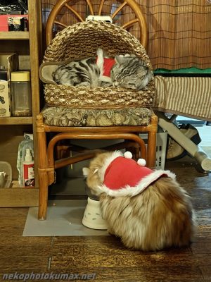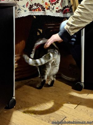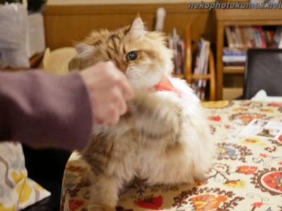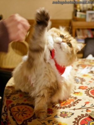 おや?別の常連さんがチーちゃんをネコジャラシでジャラシ始めましたよ。