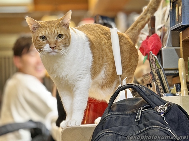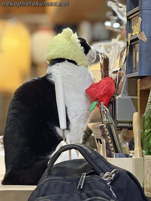 カウンターではミンチョくんがマスターに帽子をかぶらされています。